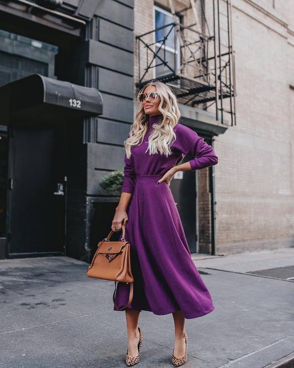 Kewanitaan sempurna direalisasikan dalam imej yang bergaya untuk musim sejuk dengan pakaian midi dirajut. Pakaian midi yang cantik untuk musim bunga, musim luruh dan musim sejuk dalam versi rajutan boleh digabungkan dengan kasut, kasut dan kasut dengan selamat, menunjukkan kombinasi yang sangat cantik dan busur yang menawan.