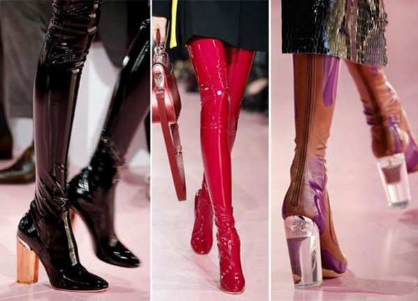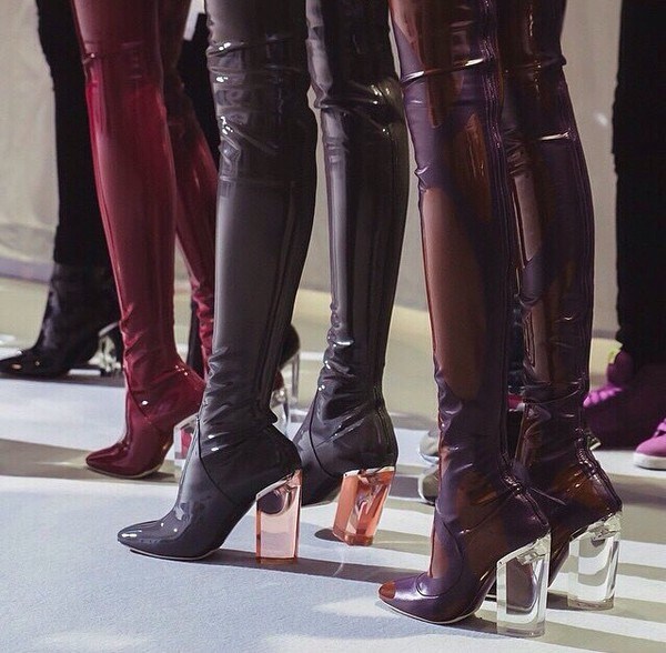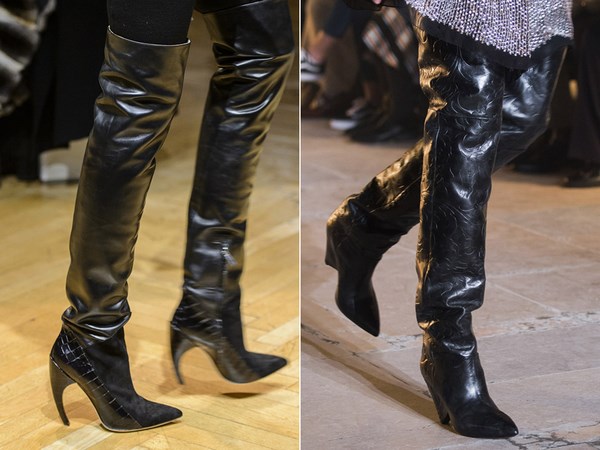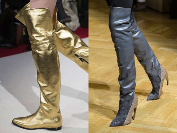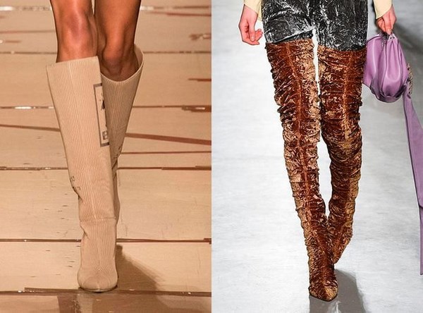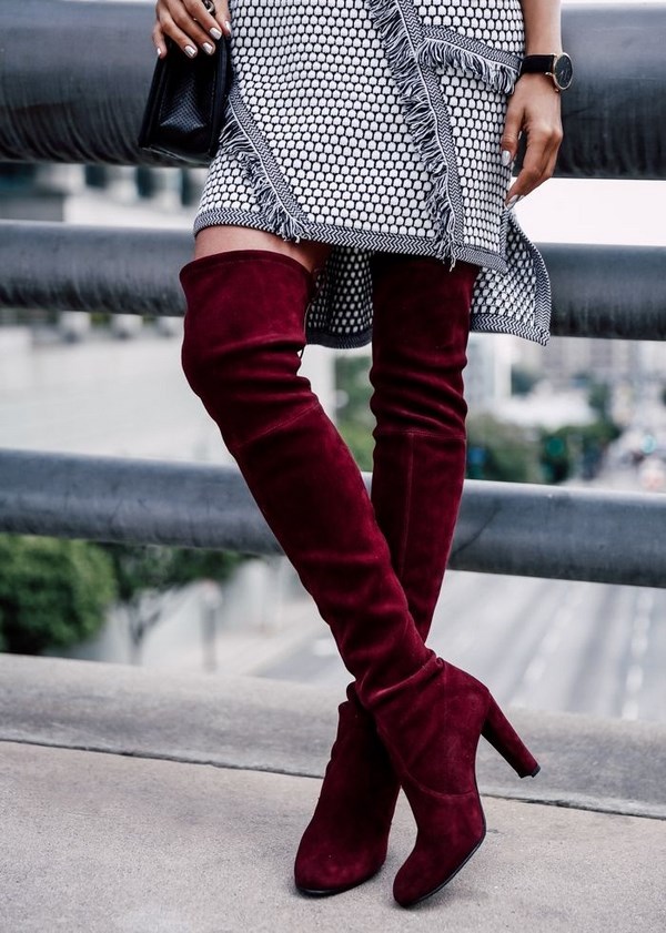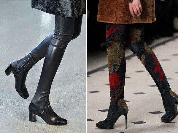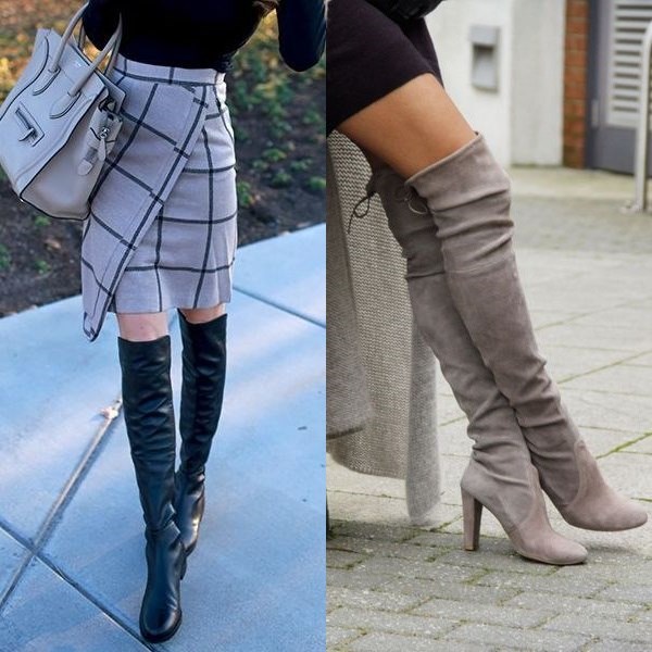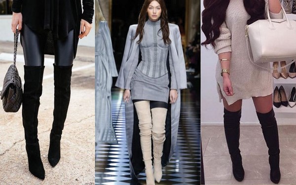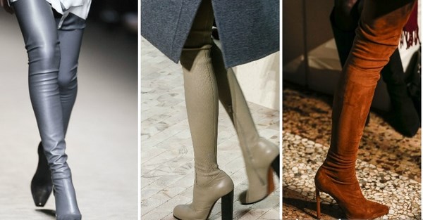 Apabila memilih bergaya di atas but lutut, beri perhatian kepada model asal dari tekstur gabungan: kulit, suede, varnis, dan juga pada lutut pada platform atau baji, yang lebih praktikal dan mudah dalam cuaca buruk.