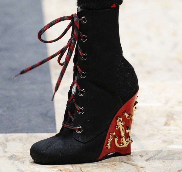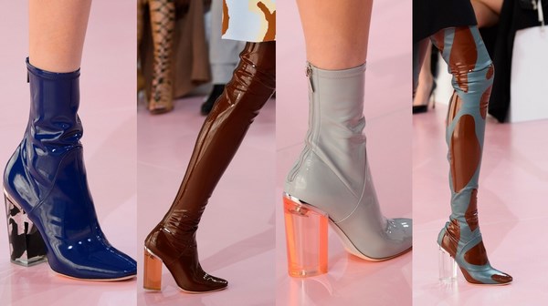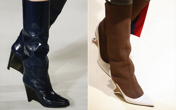Trend yang luar biasa musim ini adalah kasut dengan tumit yang bergeser sedikit ke hadapan, dan tumit seolah-olah menggantung, serta kasut stok, yang menarik perhatian dan menghasilkan kesan khas apabila kasut itu dilihat.