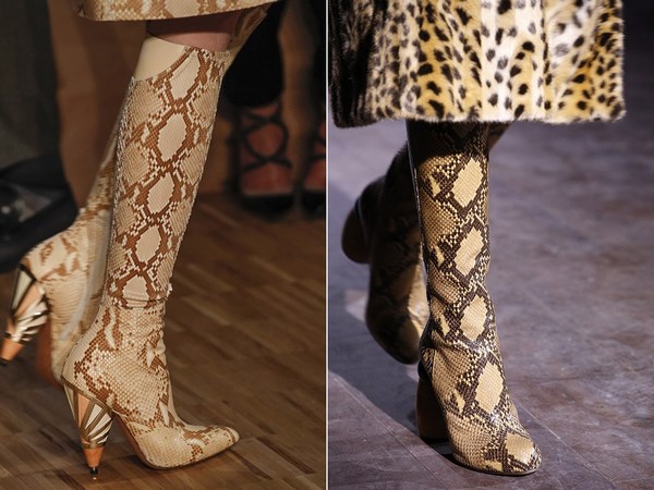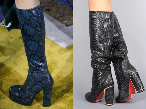 Boots dengan cetakan eksotik - cetak harimau, cetakan zebra bergaris, cetakan buaya, dan sebagainya, yang dibentangkan dalam warna-warna yang luar biasa dan kombinasi warna, akan membantu membuat busur bergaya dan bergaya yang menarik perhatian dan minat. Butang tersebut pasti akan menarik minat wanita dan wanita yang berani dan berani.