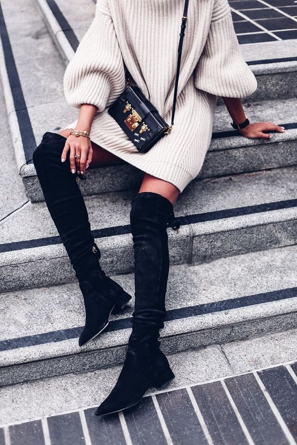 Bergaya di atas kasut lutut adalah but panjang memanjang yang kelihatan hebat dengan pakaian pendek, baju panjang dan juga seluar jeans, membolehkan anda kelihatan bergaya dan asli.