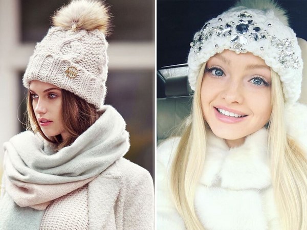 Anda boleh memilih topi rajutan yang bergaya untuk gaya dipasang dan rajutan nipis yang kelihatan lebih elegan dan canggih. Di antara banyak gadis, topi bersulam asli yang popular yang sesuai dengan pakaian luar yang besar, melengkapkan busurnya dengan sempurna dan menjadikannya harmoni.