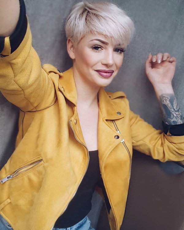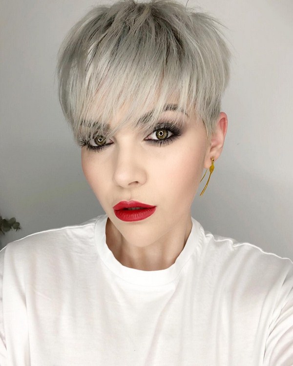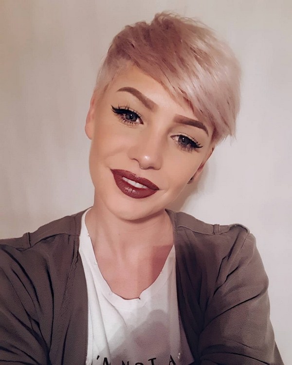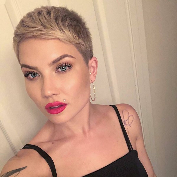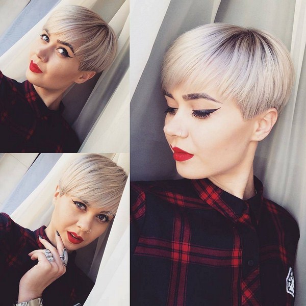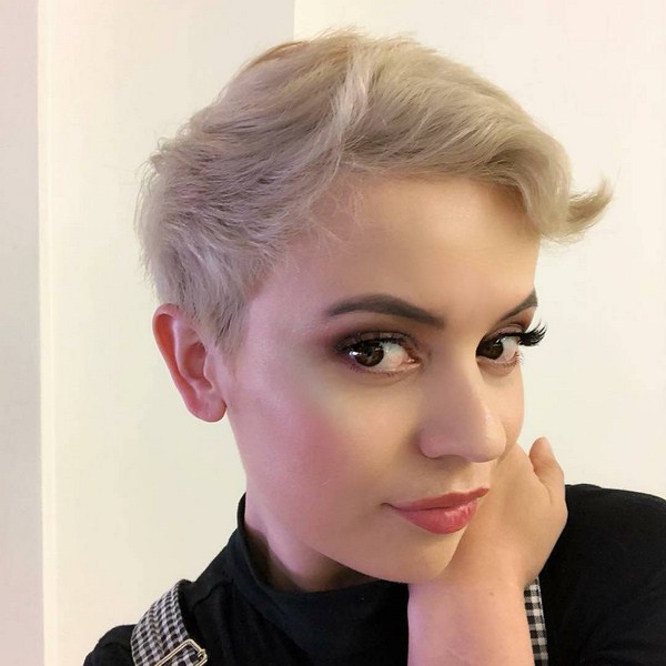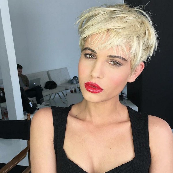 Boyish dan gagah, potongan rambut sporty dan mewah akan menjadi keputusan menarik dalam busur wanita moden. Pixie hanya itu, menekankan ciri-ciri individu - bibir atau mata, mewujudkan aksen. Oleh itu, sangat penting untuk melakukan solekan yang sangat baik dengan potongan rambut pixie. Pixie ultra pendek akan menambah kecanggihan dan menjadikannya kelihatan lembut dan ringan.