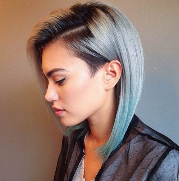 Potongan rambut asimetri dengan panjang rambut sederhana kebanyakannya diwakili dengan lengan panjang di satu pihak, gaya penampilan ceroboh dan haus.