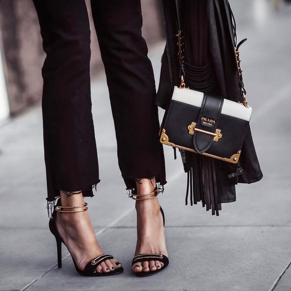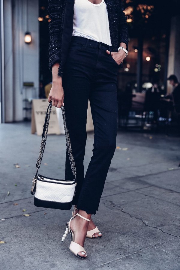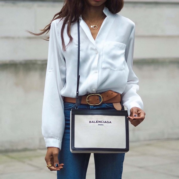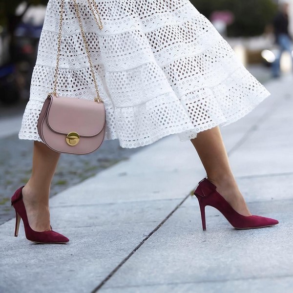 Beg tote trapezoidal yang menarik boleh menampung perhiasan wanita dan dokumen penting. Di samping itu, kasut stiletto dan selipar yang bergaya, kasut lido oxford adalah ideal.