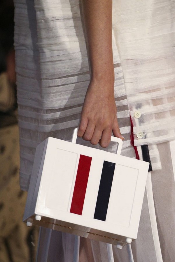Satu kejutan musim akan menjadi beg segi empat tepat yang diperbuat daripada bahan berlubang, mewujudkan berlian bergaya "berlian" pada permukaan beg.
