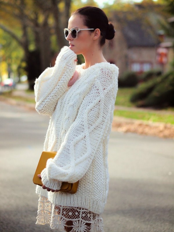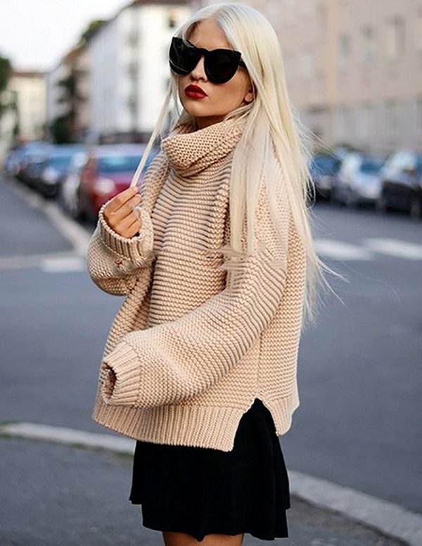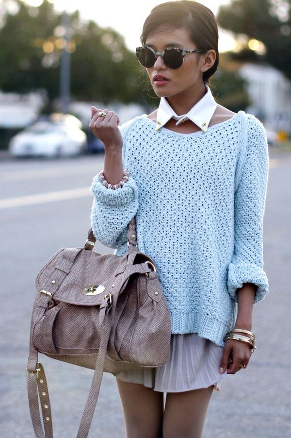 Jenis sweater yang paling popular untuk wanita adalah versi rajutan yang kelihatan bergaya dan pada masa yang sama menghangatkan pada musim luruh musim sejuk yang sejuk, baik di pejabat, berjalan kaki, dan juga bercuti.