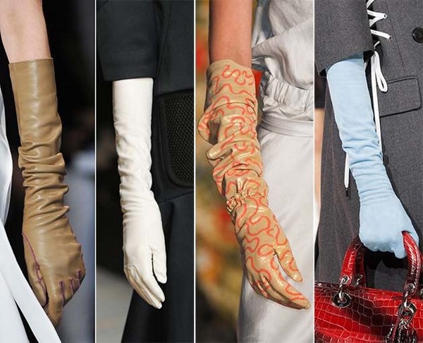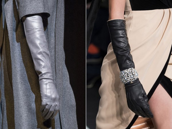 Lihatlah dengan lebih dekat pilihan yang dicadangkan oleh pereka pada musim 2025-2026 - sarung tangan panjang yang diperbuat daripada kulit atau kain.