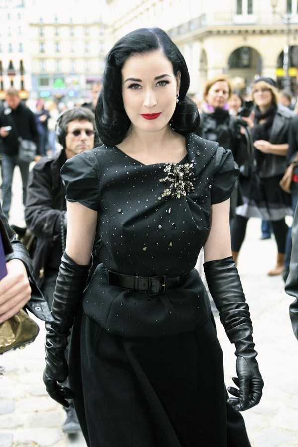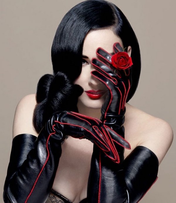 Banyak selebriti berjaya menunjukkan imej terbaik dengan sarung tangan dan pakaian, khususnya, Dita von Teese berulang kali memilih pakaian hitam dan sarung tangan kulit yang panjang dengan warna yang sama untuk penampilan asalnya.