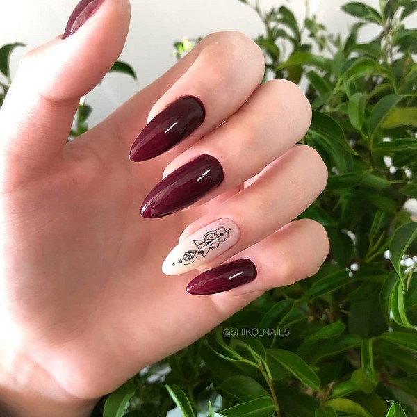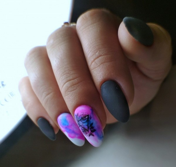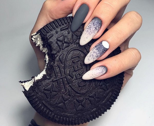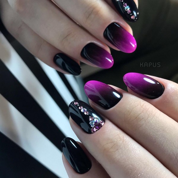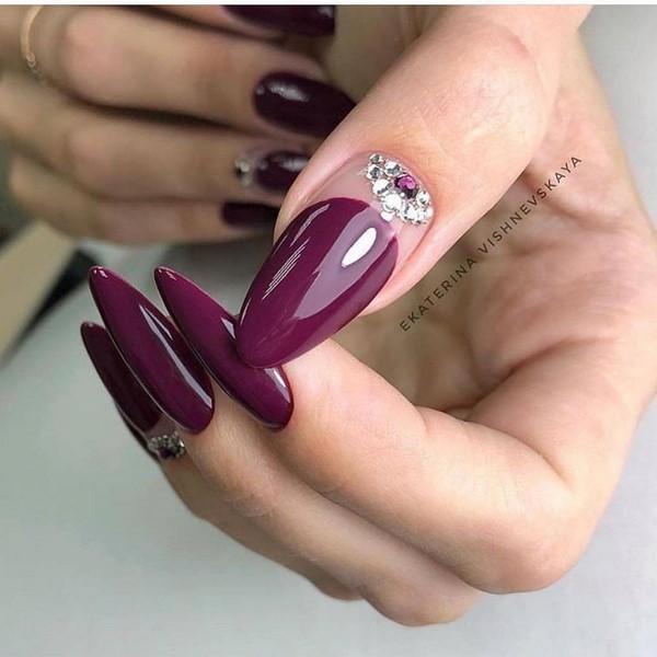 Kuku panjang dengan reka bentuk yang bergaya dalam warna gelap menggilap gel akan lebih ekspresif dan berkesan. Supaya manicure gelap pada kuku panjang tidak kelihatan begitu suram, ia patut dilepaskan dengan nota warna-warna cerah atau unsur-unsur dalam bentuk rhinestones, membuat ombre dengan varnis gelap, serta lukisan cerah.