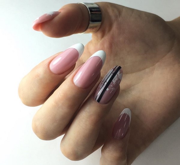 Kelas kegemaran masih dalam permintaan, sesuai dan wajar, dan hari ini bertemu jaket pada kuku panjang. Kami mengesyorkan melihat idea-idea baru untuk reka bentuk Perancis untuk kuku panjang, iaitu dengan gambar, cetakan foil, jalur gel menggilap atau rhinestone, glitter atau cip kristal pada jari keseluruhan, yang kelihatan hebat pada kuku panjang.