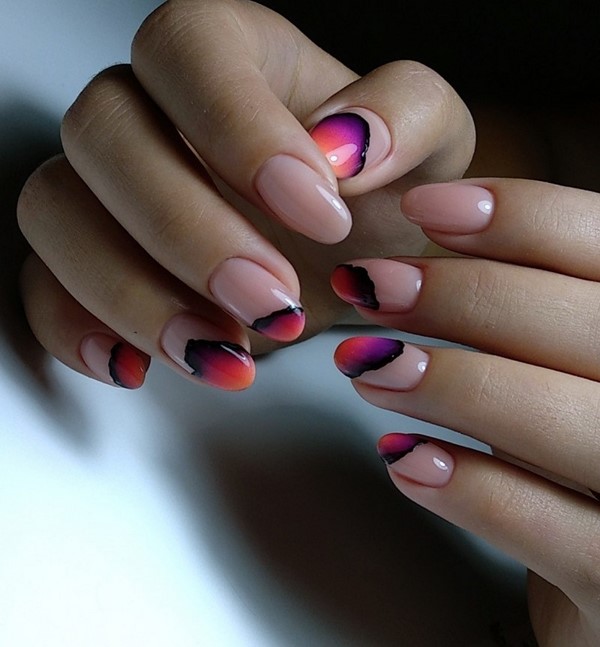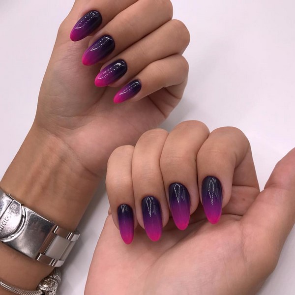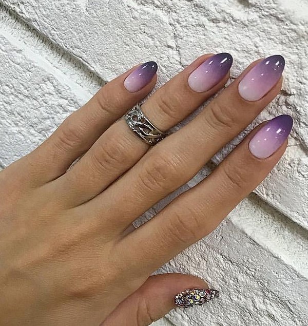 Peralihan lembut, dalam erti kata lain, meregangkan warna dari gelap gelap hingga cerah atau dari gelap ke cahaya selalu sangat luar biasa dan menarik, terutama pada kuku panjang. Manicure kecerunan ombre bergaya akan menjadi cantik dalam gaya baru - bukan keseluruhan jari, digabungkan dengan lubang, lukisan atau dengan rhinestones, membolehkan anda membuat reka bentuk kuku panjang dan elegan.