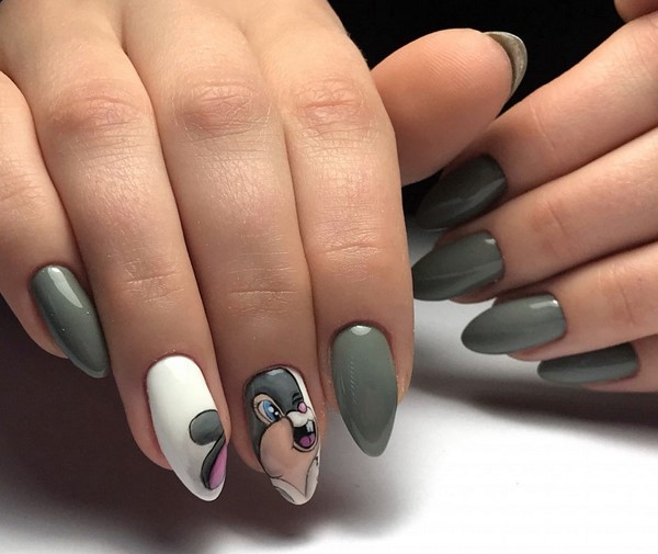 Kuku panjang yang bergaya dengan lukisan lucu, suka bermain dan lentur tidak disedari. Gambar kreatif pada kuku panjang boleh menggambarkan watak kartun, haiwan - kelinci, burung, kucing, dll.