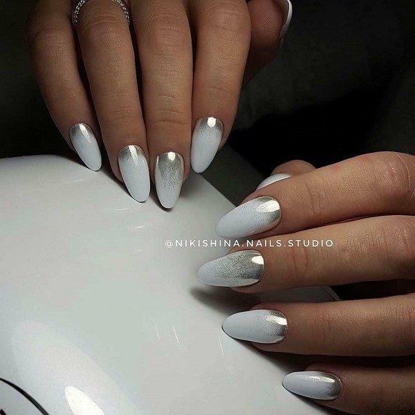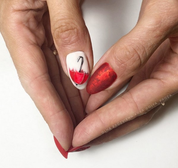 Reka bentuk monophonic, minimalism, hiasan laconic dengan foil, serpihan Yuki, kristal pixie, sup dan kamifubuki terlihat cantik pada kuku panjang. Trend ini juga merangkumi reka bentuk cat dan cetakan grafik dengan garis dan angka, yang memberikan rupa ringkas kepada kuku panjang.