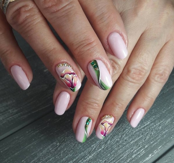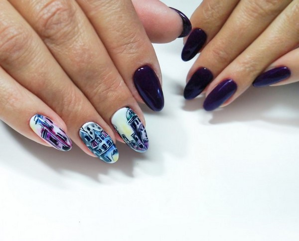 Yang paling berkesan dan menarik, tentu saja, akan menjadi manicure yang bergaya dengan lukisan dan lukisan pada kuku panjang. Terima kasih kepada panjang, anda boleh menterjemahkan mana-mana reka bentuk yang anda suka. Motif bunga romantis, landskap yang indah dan panorama, grafik yang bergaya, minimalism, lukisan haiwanistik bergaya dan bunga akan kelihatan sangat indah dalam seni kuku yang paling bergaya untuk kuku panjang.
