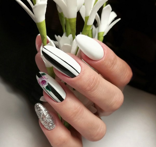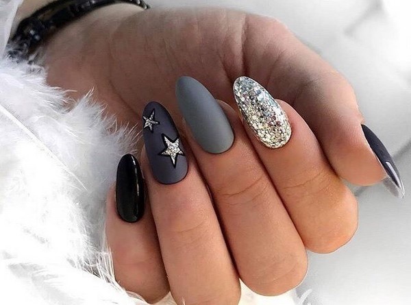 Reka bentuk kuku bercuti tidak akan seperti itu tanpa hiasan bergaya dengan berkilau pada kuku, bermula dengan rhinestones dan berakhir dengan kamifubuki. Variasi bagaimana untuk menambah sentuhan glamor dan kesungguhan kepada reka bentuk kuku panjang yang bergaya. Adalah penting untuk diingat bahawa kuku panjang dengan penekanan pada beberapa jari dalam bentuk berkilau akan sangat harmoni dan megah, yang tidak boleh dikatakan tentang kuku yang lebih pendek, yang mudah untuk "membebani" dengan hiasan seperti itu.