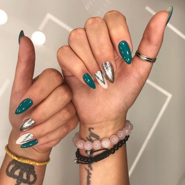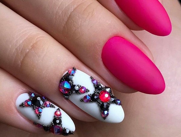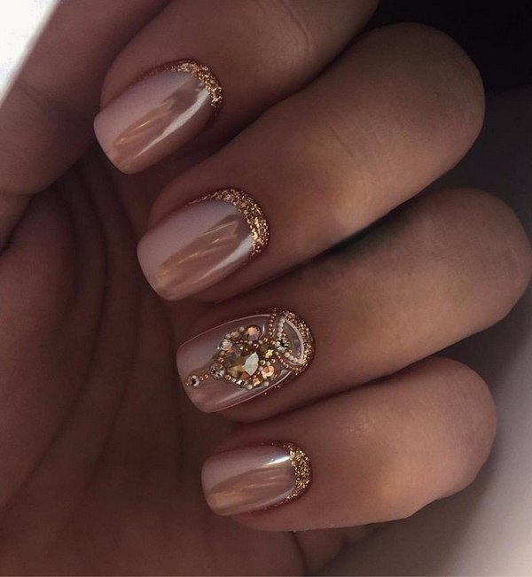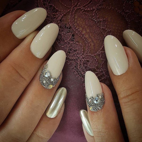 Perhiasan pada salah satu kuku akan dapat menambah sentuhan pada reka bentuk kuku comel dalam pelbagai halus dan membuat aksen, sebagai contoh, wayar meniru gelang, manik dan unsur hiasan lain yang memungkinkan untuk menjadikan manicure musim panas yang tidak dapat dibayangkan 2025-2026 menjadi kenyataan.