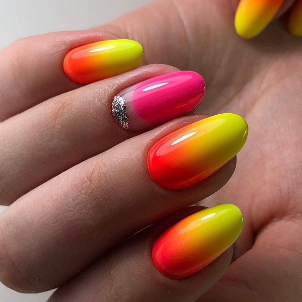 Pekat merah, oren terang, biru, kuning dan merah jambu adalah pilihan sempurna untuk musim panas manicure yang menakjubkan 2025-2026.