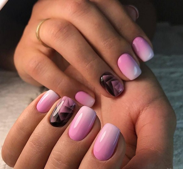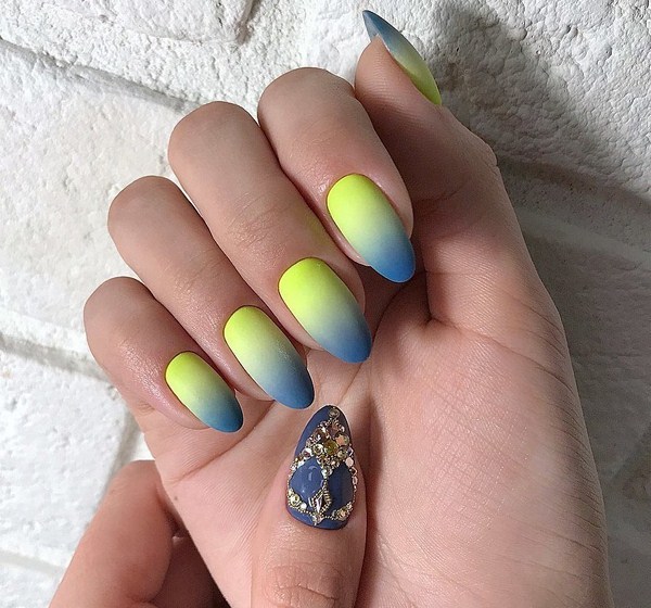 Penampilan jaket musim panas yang menawan adalah jaket ombre untuk musim panas 2025-2026, yang kelihatan menakjubkan pada kuku bentuk dan panjang yang berbeza.