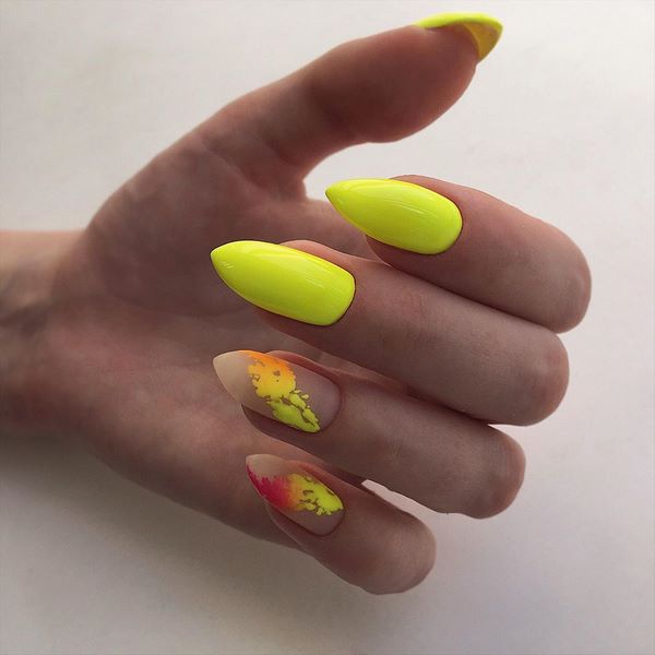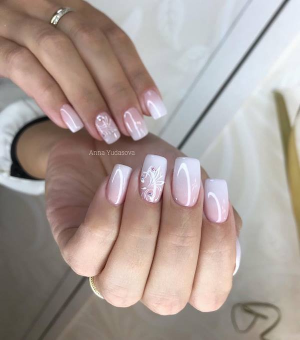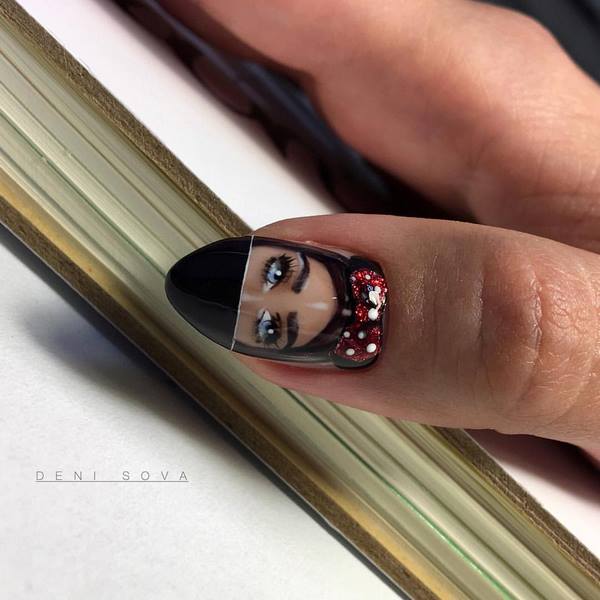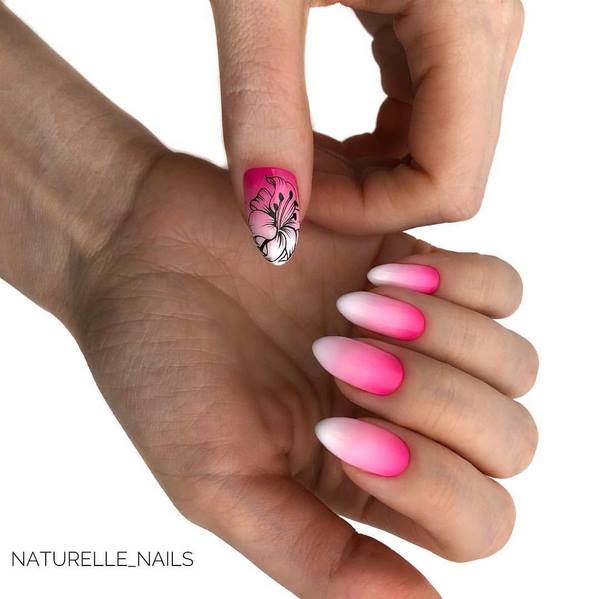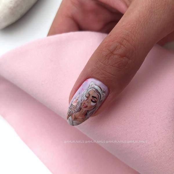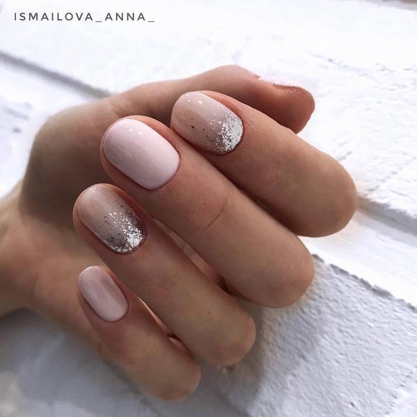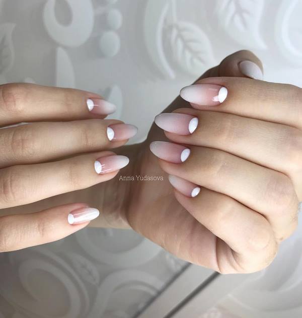 Manikur yang popular di kalangan ramai gadis yang dibuat dalam teknik angkasa negatif, yang merupakan manicure dengan bahagian kuku berwarna.