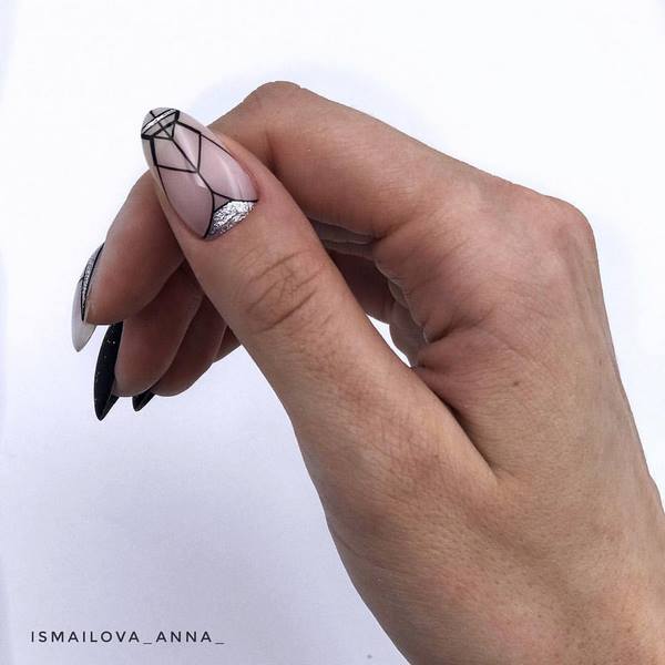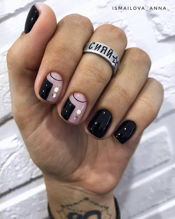 Idea yang bagus ialah manicure ruang negatif dalam warna hitam dan putih atau berbeza warna, yang kelihatan agak menarik dan tidak biasa, dan yang paling penting, segar dan dengan cara yang baru.