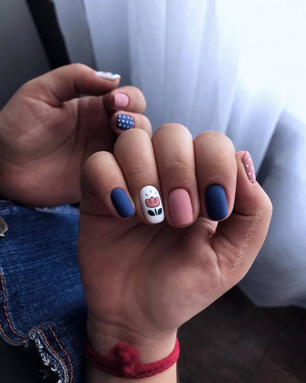 Ciri utama manicure blok warna yang bergaya adalah penggunaan warna yang berbeza, warna terang dan klasik serta warna bogel.