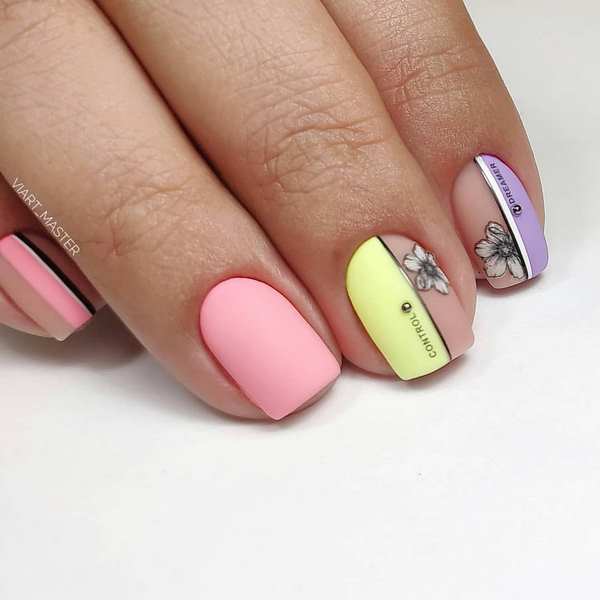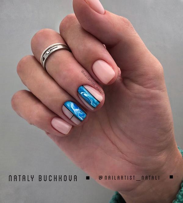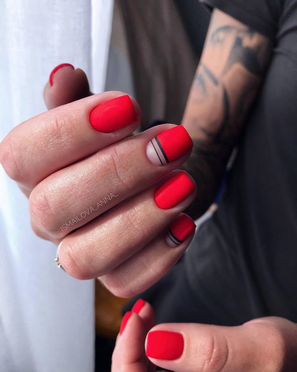 Satu lagi jenis fesyen manicure fesyen 2025-2026 adalah apa yang dipanggil "manikur blok", yang terdiri daripada membahagikan kuku ke sektor yang berbeza menggunakan garis.