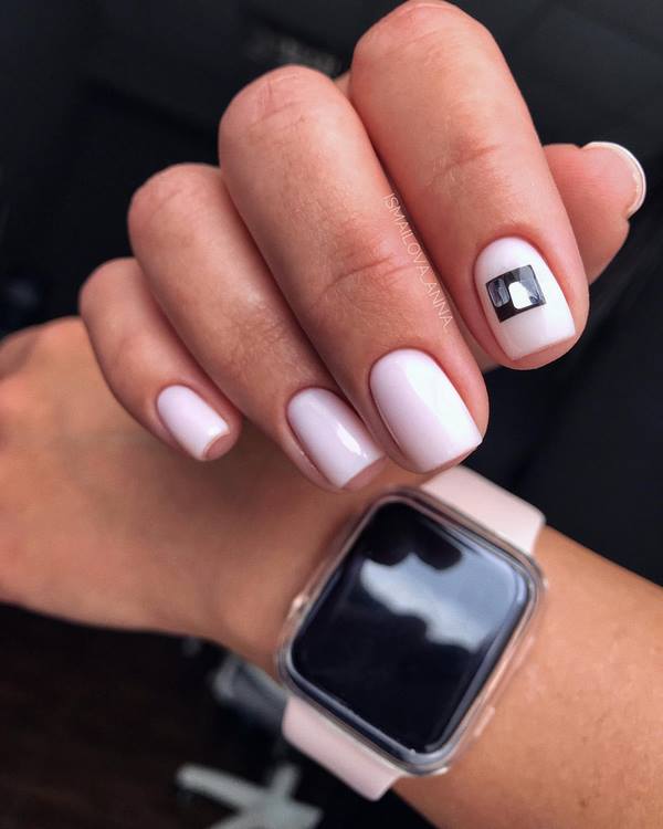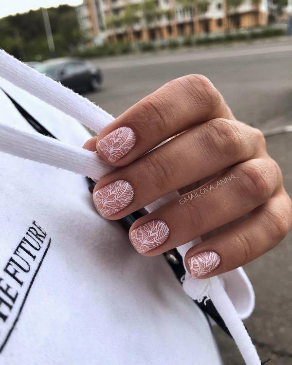 Selalunya, jenis manicure yang bergaya ini dibentangkan di manicure bulan dan pelbagai pilihannya, serta manicure yang menarik dengan corak geometri, di mana bentuk segi empat, bujur, hati boleh menjadi tidak berwarna.
