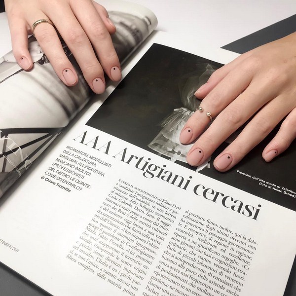 Reka bentuk kuku yang bergaya dengan titik-titik sesuai dengan sempurna ke arah kuku paku 2025-2026, mengarahkan kepada kami penyelesaian reka bentuk kuku yang mudah dan agak mudah, tetapi pada masa yang sama menarik dan menarik.