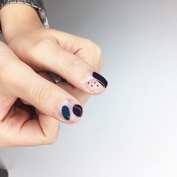 Selain bidang manicure yang disebutkan di atas, anda boleh menemui manikur dot bergaya dalam tafsiran lain, seperti yang ditunjukkan dalam contoh foto.