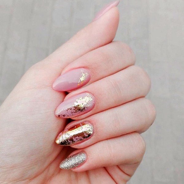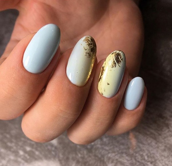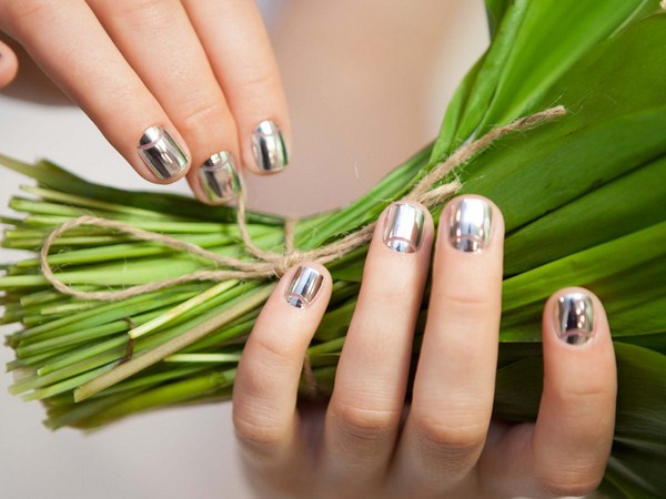 Oleh itu, anda boleh melakukan manicure logam yang bergaya dengan kerajang dalam limpahan emas atau perak, meliputi dengan kuku keseluruhan, yang akan sangat berkesan, atau sebahagiannya menggunakan kepingan foil untuk menambah bersinar ke jari individu.