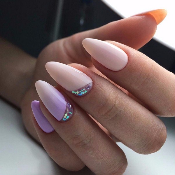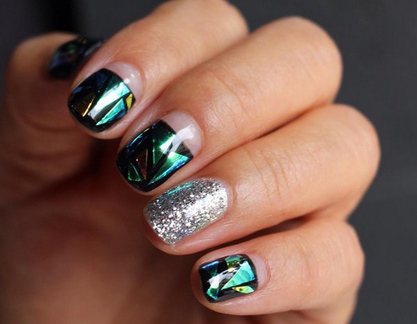 Manicure yang menarik dengan kerajang kaca pecah boleh dilakukan dalam pelbagai variasi, menggunakan kepingan-kepingan dari pelbagai bentuk dan meletakkannya dengan cara tertentu, anda boleh mendapatkan kuku yang luar biasa dengan seninya dengan kerajang.