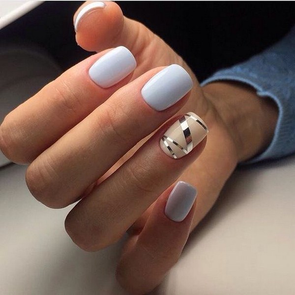 Shades pastel kelihatan baik dengan jalur perak dari foil, membolehkan anda membuat manicure yang menawan dengan foil pada musim 2025-2026. Jaket cantik dengan jalur foil juga relevan di kalangan wanita yang cantik.