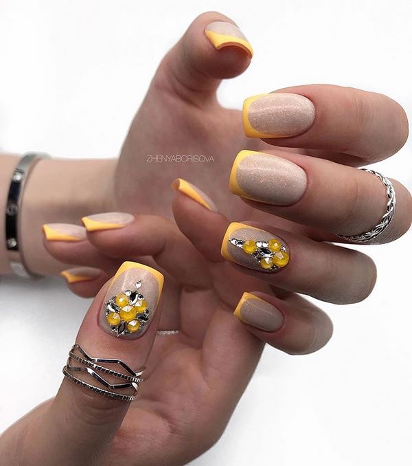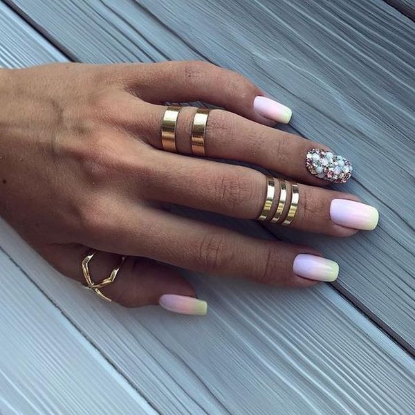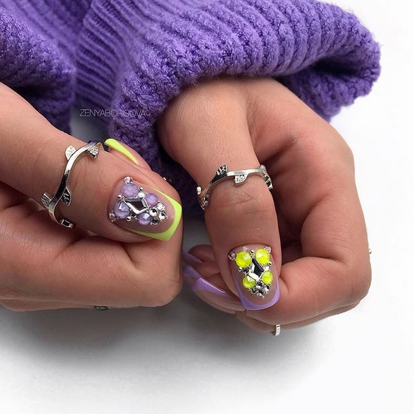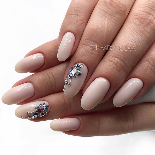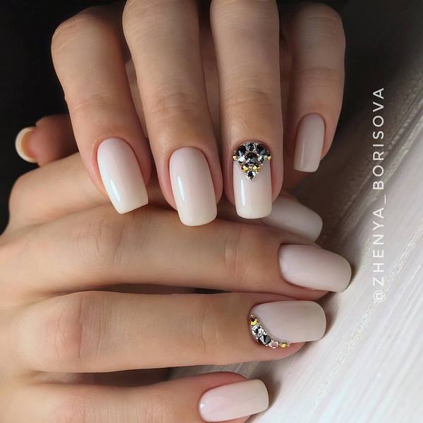 Oleh itu, rhinestones dan perhiasan dalam manicure harus sederhana dan ringkas, supaya manikur itu tidak kelihatan tidak masuk akal dan haus, tetapi, sebaliknya, cantik dan bergaya.