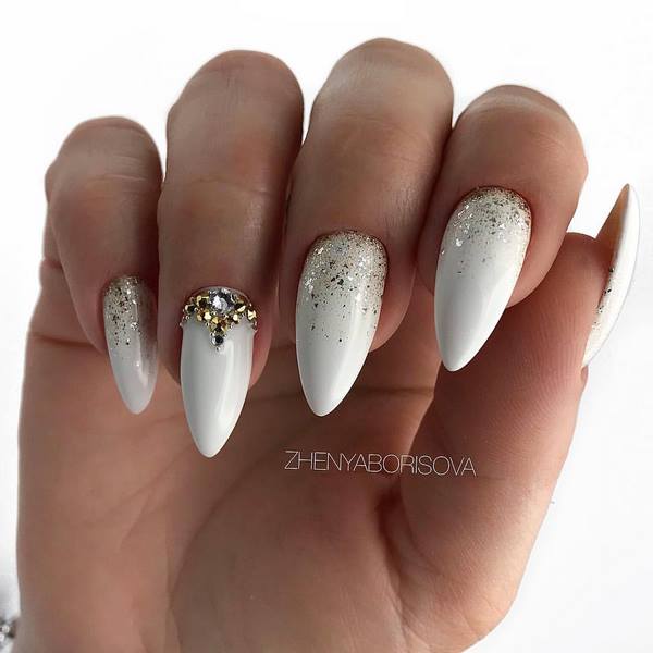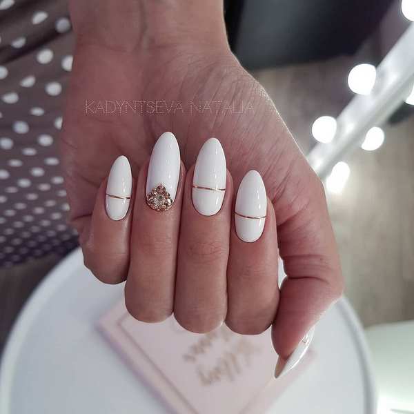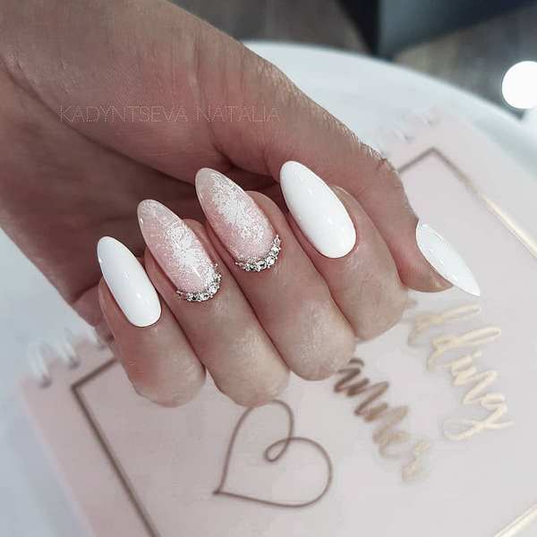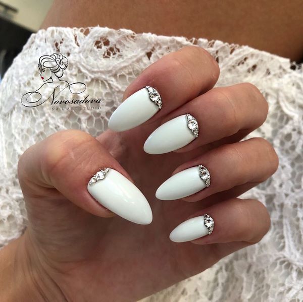 Juga, manicure klasik dengan rhinestones paling sesuai untuk pengantin perempuan, yang busur manis dan halus harus sangat menarik dan sempurna.