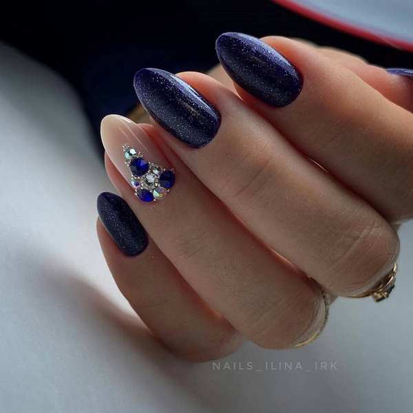 Manicure bergaya dengan rhinestones 2025-2026 dibentangkan oleh tuan seni paku dalam warna warna yang berbeza - dari gelap dan tepu kepada nada, nada dan nada varnis lembut yang anda boleh cuba untuk mencipta pada kuku anda