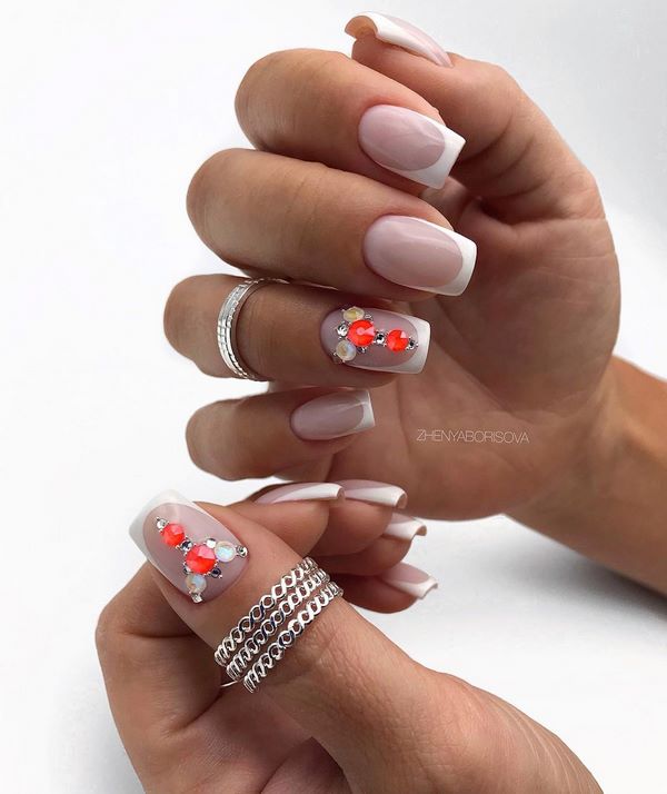 Memilih pilihan klasik untuk manicure pada kuku anda, sebagai contoh, jaket dan manicure bulan? Kemudian kami mencadangkan mempelbagaikan mereka dengan rhinestones, manik dan kerikil, yang akan "bermain" pada kuku dan membuat manikur lebih berkesan.