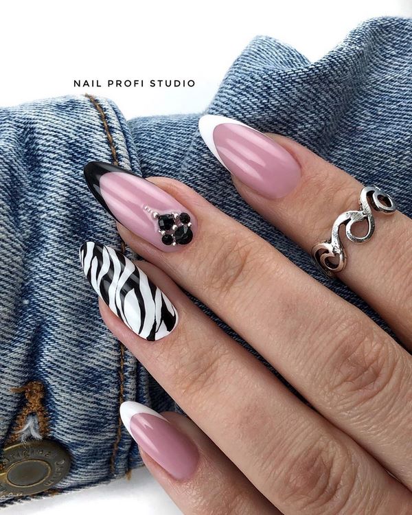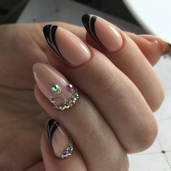 Manikur malam mewah dengan rhinestones yang sempurna melengkapkan lukisan dan cetakan asli pada kuku mungkin pilihan manicure terbaik untuk wanita sejati.