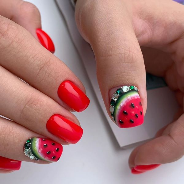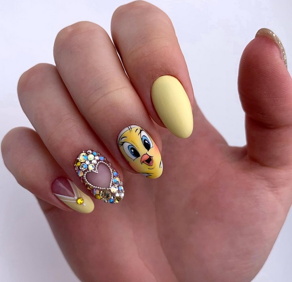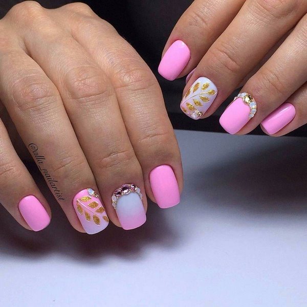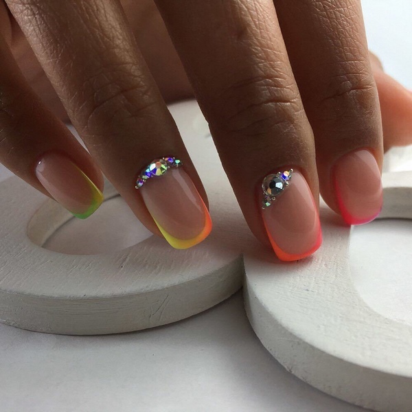 Versi manicure yang canggih dan canggih, yang disampaikan oleh tuan industri kuku musim ini, boleh dilakukan walaupun pada kuku pendek. Lukisan dan cetakan comel, yang dilengkapi dengan rhinestones, adalah lebih asli dan luar biasa.