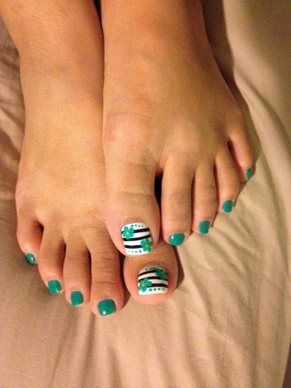 Pedicure asal dengan lukisan dan corak