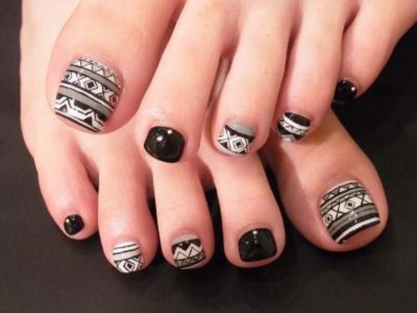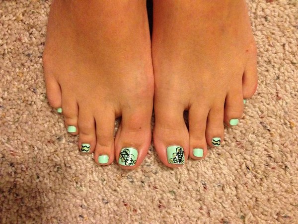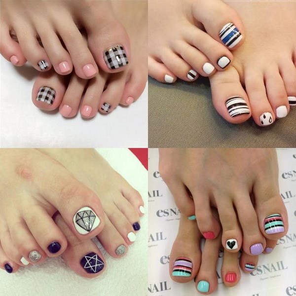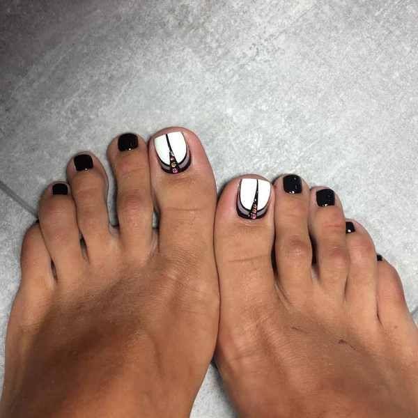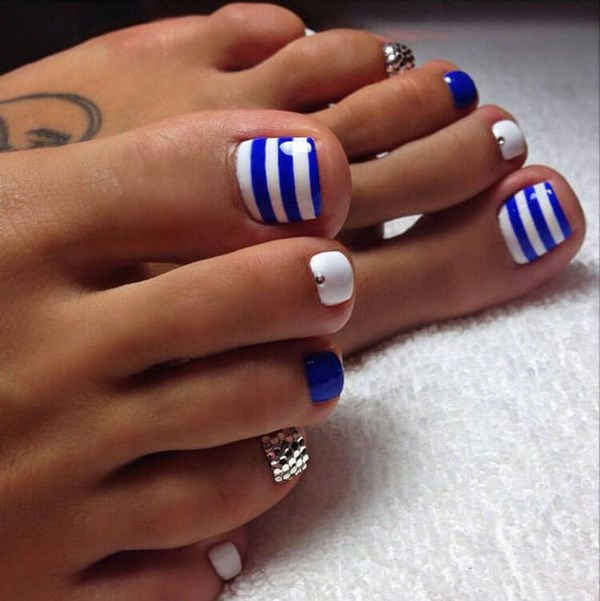 Ia semua bergantung kepada hasil akhir yang anda mahu lihat sebagai pedikur. Jadi, pedikur yang bergaya adalah menarik dengan lukisan dalam bentuk sauh, hati, bintang, dengan corak dan perhiasan yang kompleks, garis-garis laconic, garis, zigzag.