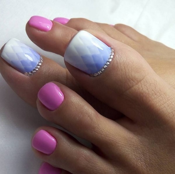 Terdapat beberapa cara untuk membuang rhinestones untuk mencipta pedikur asal 2025-2026. Oleh itu, cari idea dengan pelbagai saiz batu, warna dan pilihan mereka untuk penempatan mereka pada kuku.