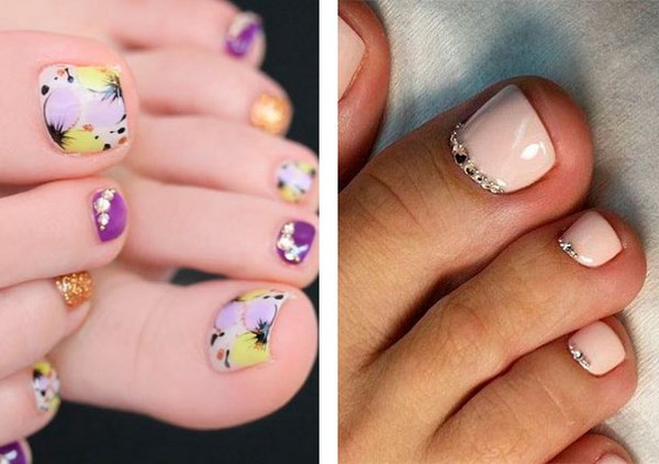 Di samping itu, anda boleh meletakkan rhinestones dengan indah, menggunakan jalur, kerajang dan perhiasan untuk mendapatkan pedikur yang menarik di kaki anda.