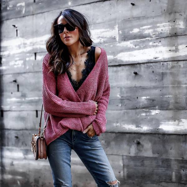 Ingin mendapatkan pemandangan musim semi yang cantik dengan sweater, anda harus memilih model cantik dengan bau, yang menghasilkan garis leher yang dalam neckline.Ini gaya sweater bergaya untuk musim bunga yang terbaik dilengkapi dengan bahagian atas yang indah dengan renda atau seluar dalam bergaya dalam bentuk topi bustier yang sempurna akan menyempurnakan pakaian musim bunga.