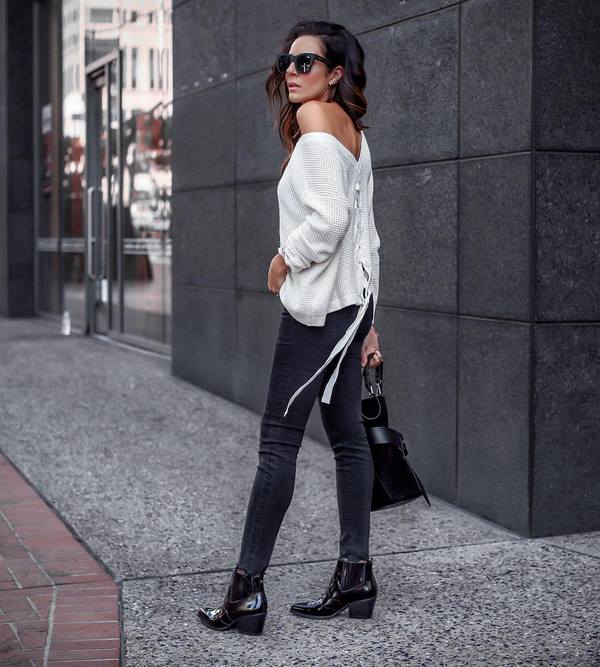 Tempoh musim bunga menawarkan model baju yang menarik dengan punggung terbuka. Sweater sedemikian boleh dilaksanakan dalam bentuk cutout di belakang dan choker di leher atau leher tinggi. Sweater musim bunga yang bergaya dengan ikatan di belakang, pelbagai pengikat dan lacing, yang indah melengkapi garis leher di belakang, juga akan menarik.