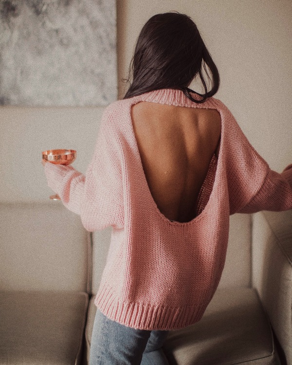 Sweater musim bunga yang luar biasa dengan belakang terbuka