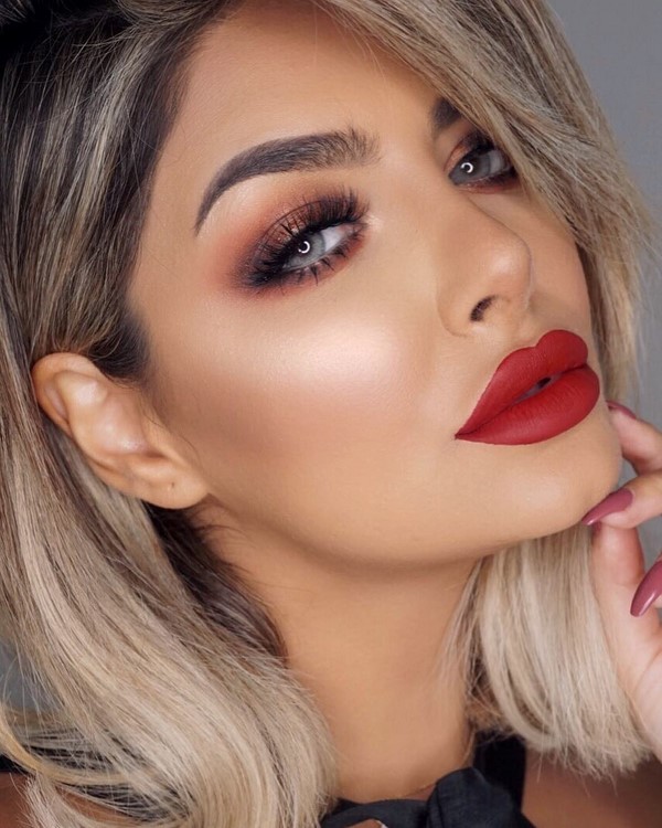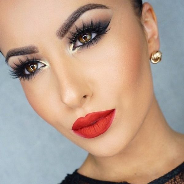 Kebanyakan stylists mengesyorkan mewujudkan penekanan sama ada pada mata atau di bibir untuk mengelakkan imej "berat" dan penampilan yang tidak masuk akal.