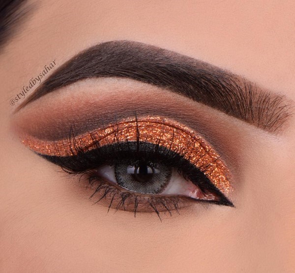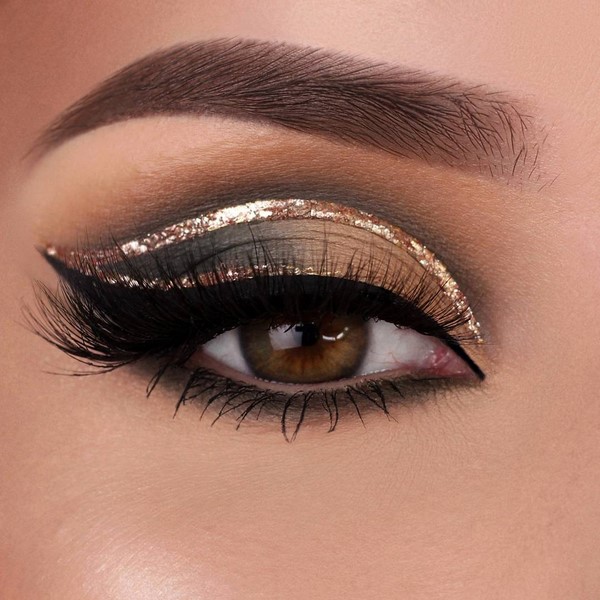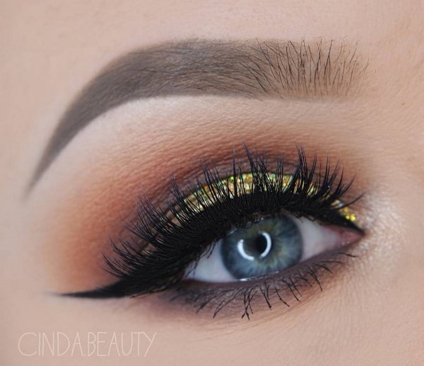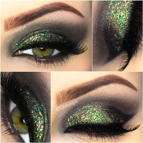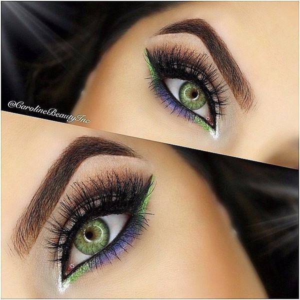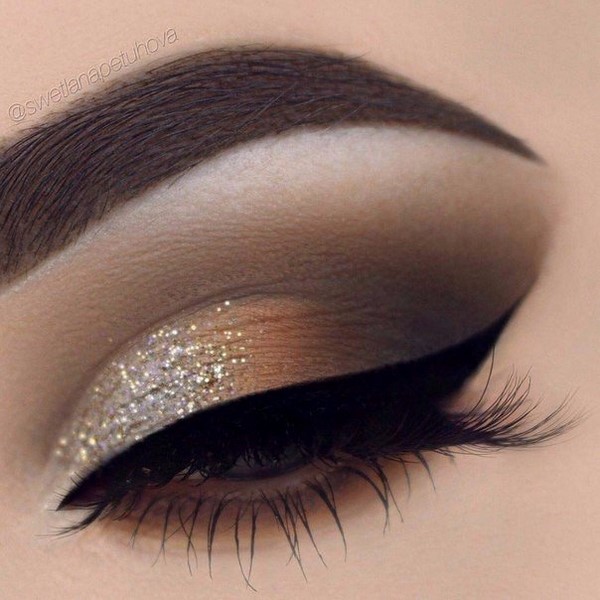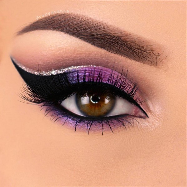 Anda boleh membawa warna variegated kedua-dua kelopak mata bahagian atas dan yang lebih rendah. Ini juga terpakai kepada solek mata Tahun Baru dengan berkilau dan bergemerlapan dalam kesederhanaan sama ada di bahagian atas atau bawah mata.