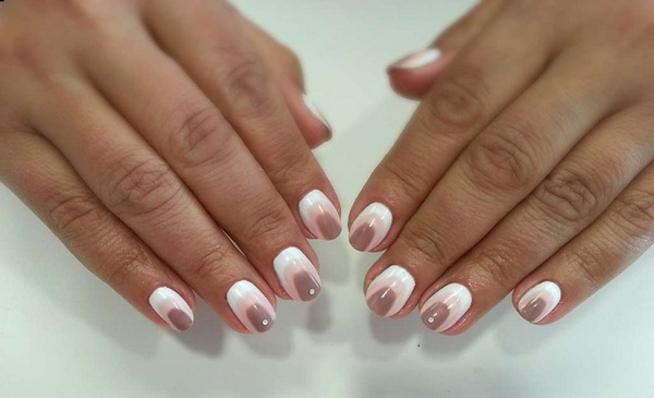 Manicure elegan ombre sendiri sangat ringkas dan canggih, tetapi dibuat dalam warna pastel, bahkan lebih seperti seorang wanita sejati yang ingin menghias kuku dengan lembut.
