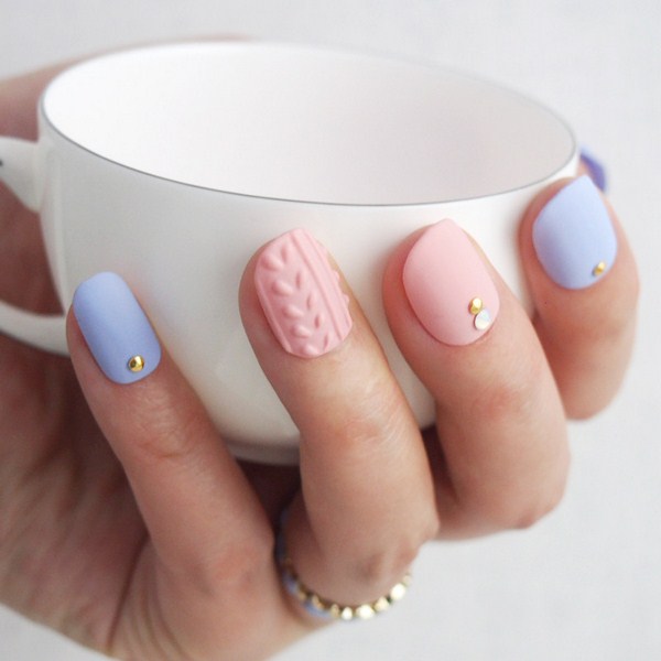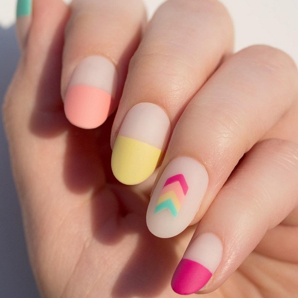 Manicure pastel yang bergaya kelihatan sangat luar biasa dan sangat asli dengan kemasan matte, yang memberikannya lebih kecanggihan dan keanggunan.